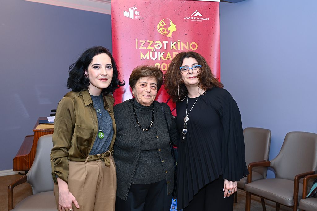 “İzzət” Kino Mükafatlarının təqdimetmə mərasimində fəxri qonaq qismində İzzət Orucovanın yaxın qohumları – Rəhilə Əhmədzadə, Fikrət Əhmədzadə və Rəna Hüseynova da iştirak ediblər.